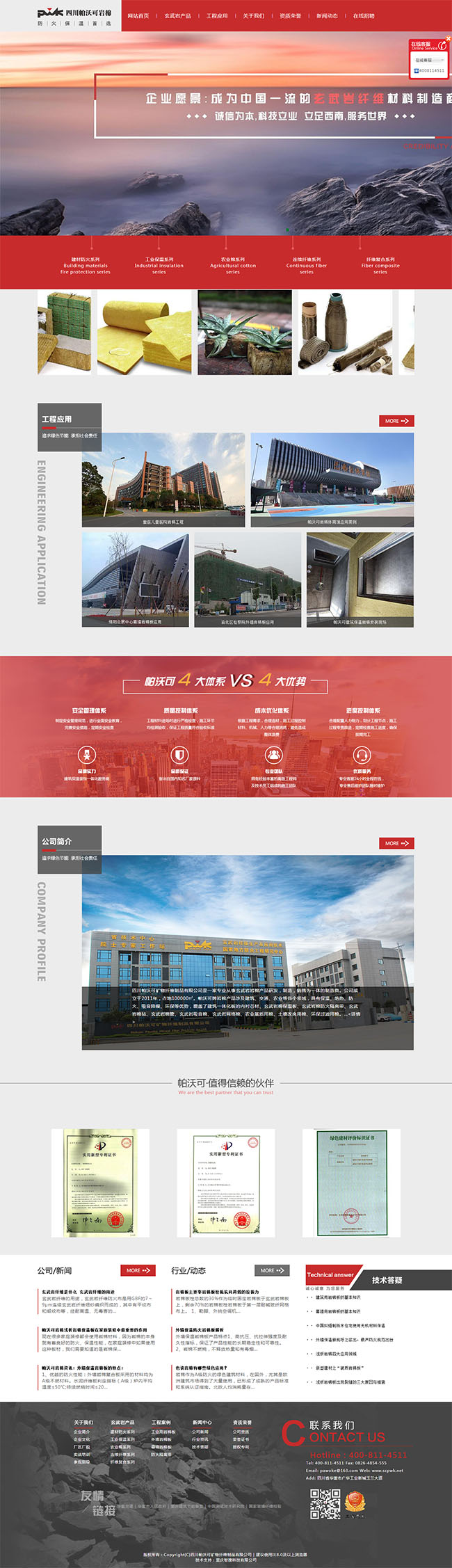 公司以極具創(chuàng)造力的技術創(chuàng)新,采用自主研發(fā)和產(chǎn)學研相結合的模式,不斷開發(fā)新產(chǎn)品。公司已獲得自主知識產(chǎn)權31項,并先后獲得國家高新技術企業(yè)、省級企業(yè)技術中心、市級院士專家工作站、四川AAA級信用評價企業(yè)、新型節(jié)能建筑材料生產(chǎn)示范單位,市政府質量獎、四川省名牌產(chǎn)品、三星級“綠色建材評價標識”等榮譽稱號。相續(xù)取得了ISO9001質量管理體系認證、ISO14001環(huán)境管理體系認證、OHSAS18001職業(yè)健康安全管理體系認證、能源管理體系認證、產(chǎn)品質量認證、AQ/T9006-2010安全生產(chǎn)標準化等認證。所生產(chǎn)的各類產(chǎn)品被國家主管部門評為綠色環(huán)保產(chǎn)品。四川帕沃可公司被國家質量檢測中心授予連續(xù)5年(2013~2017年)全國巖棉產(chǎn)品抽象型式檢驗合格企業(yè)。